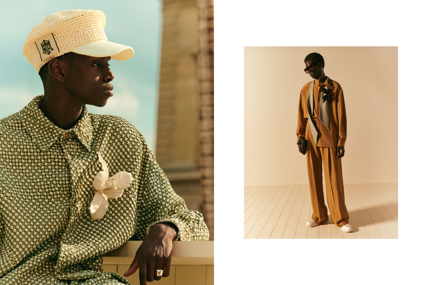 Footwear and accessories extend the spirit of the collection – from raffia bags threaded with AMIRI logos to hybridised sneakers and sculptural loafers. Every element evokes the artistry of the everyday, elevating the ordinary into the extraordinary.