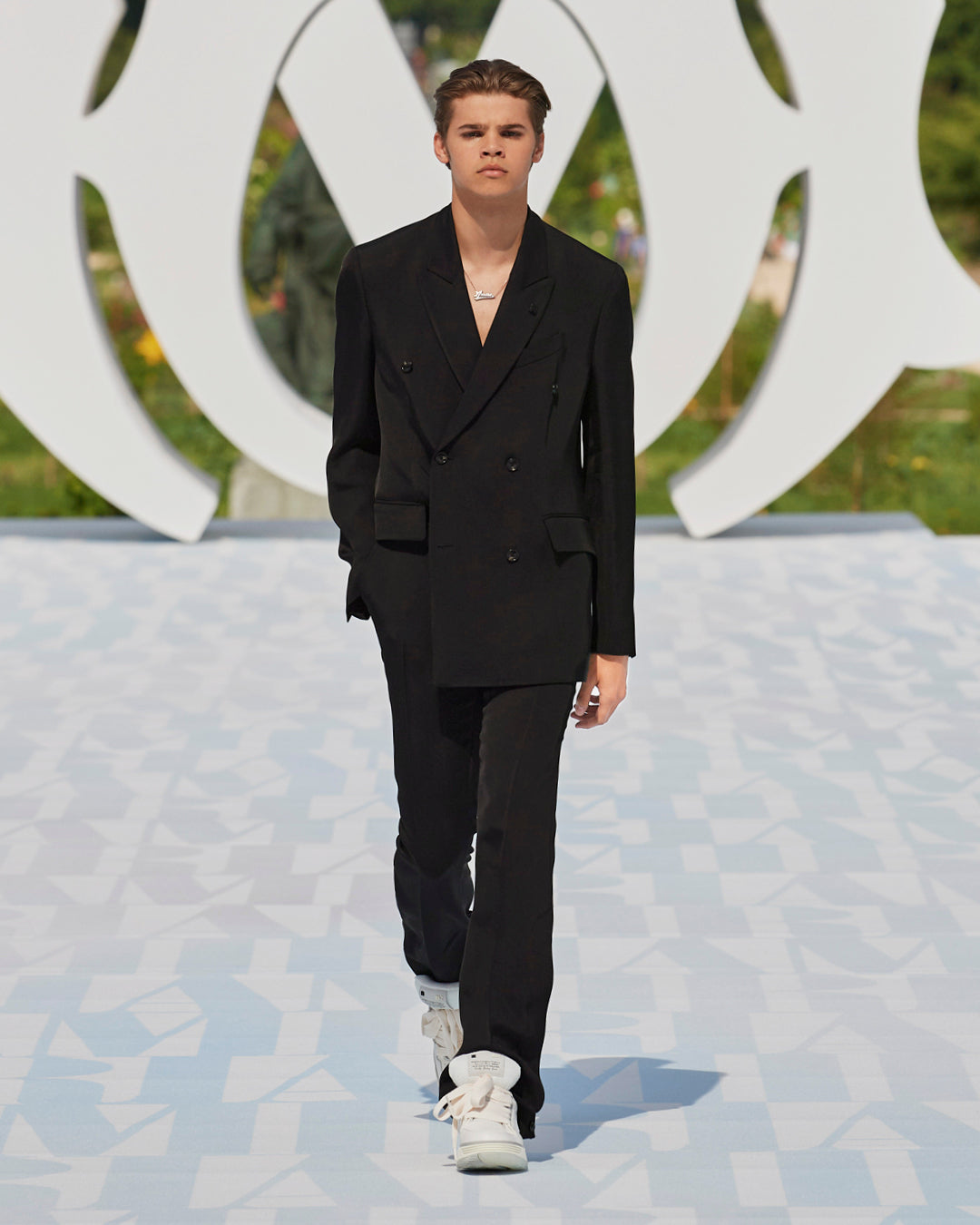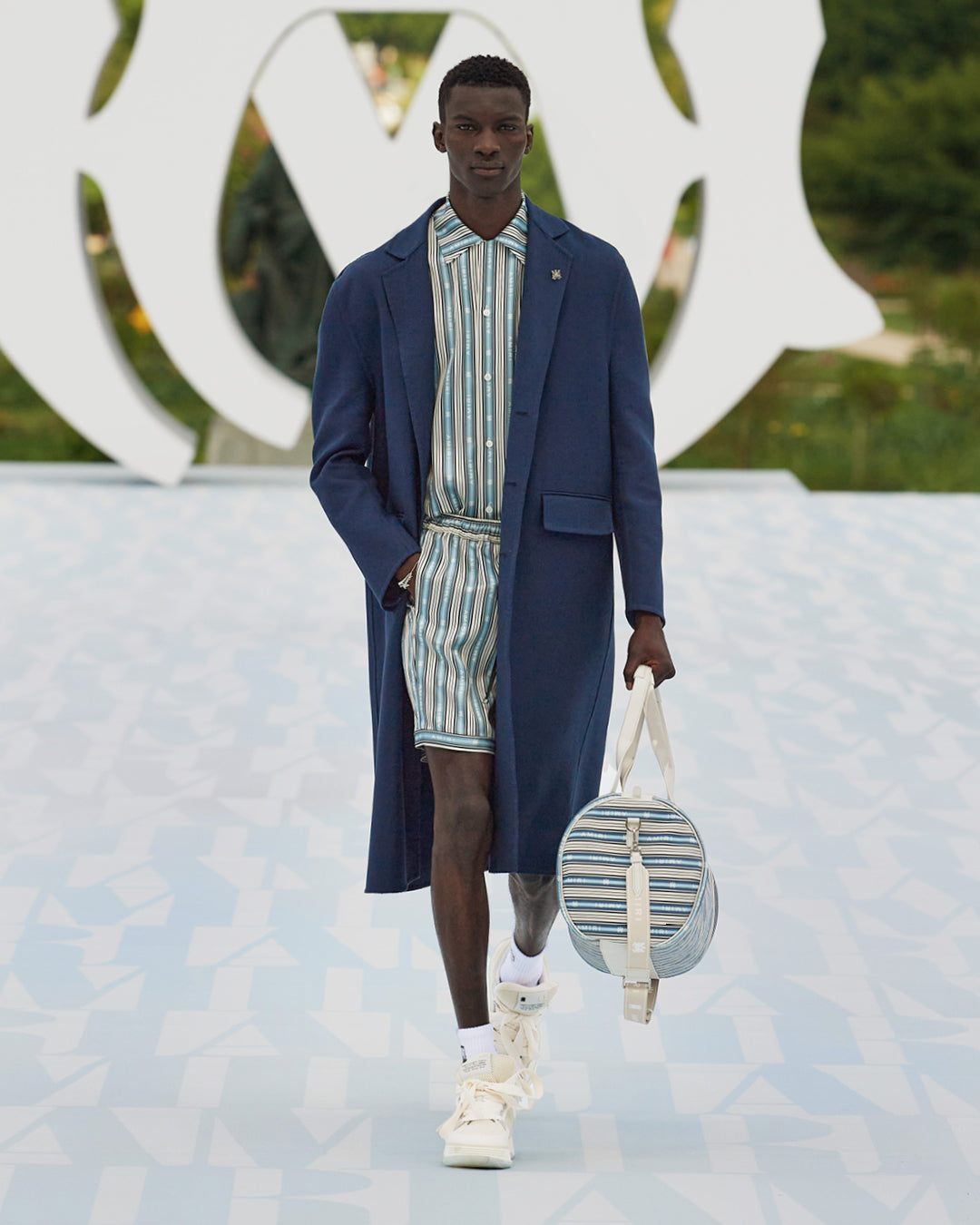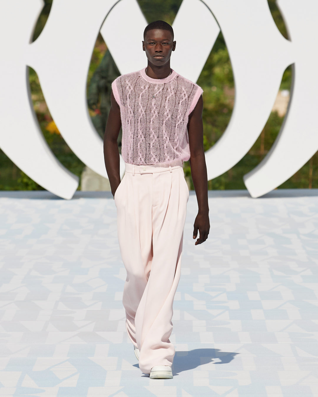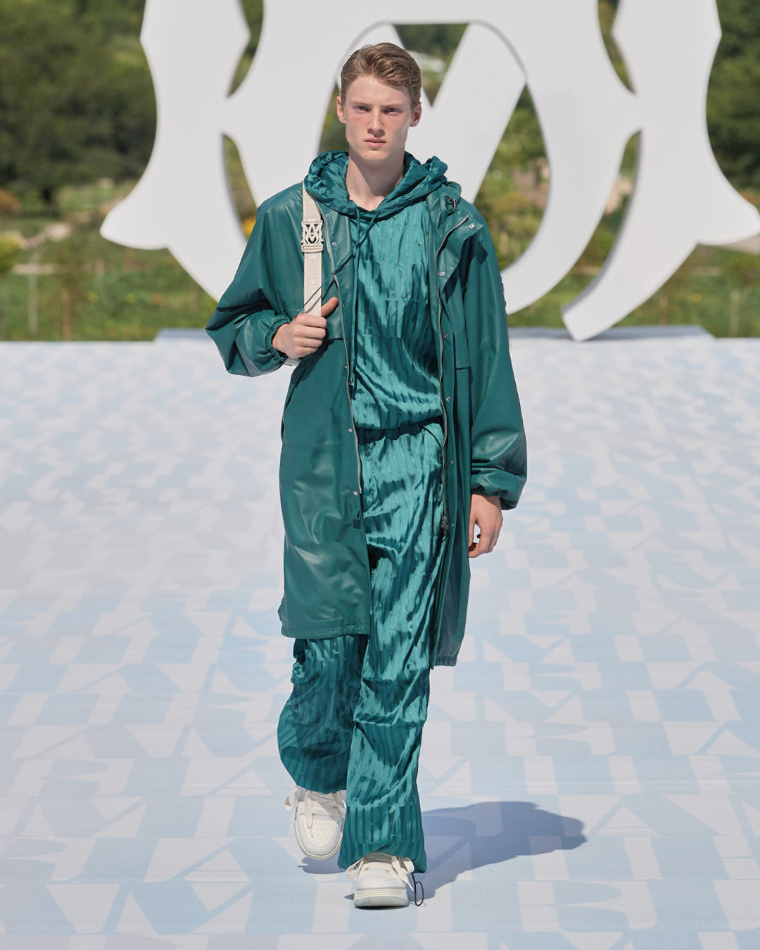 Spring-Summer ‘23 transposes Mike Amiri’s formative Los Angeles years onto a Parisian stage. Here, fleeting memories of skate parks, sports fields and early creativity are transformed into refined tailoring and expressive silhouettes. This is a world where suiting flows like jersey and stagewear meets skate style — blending sophistication with nostalgia in sun-faded hues of alabaster, dusty rose and azure blue.