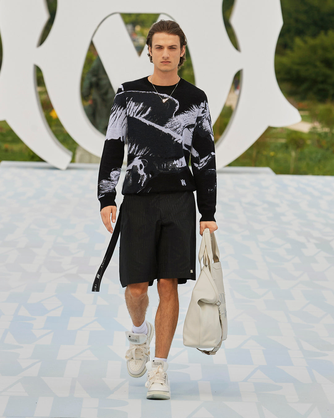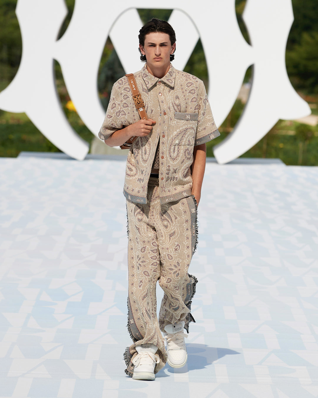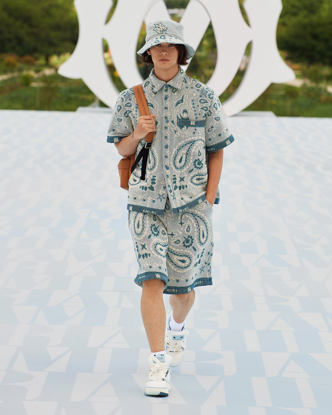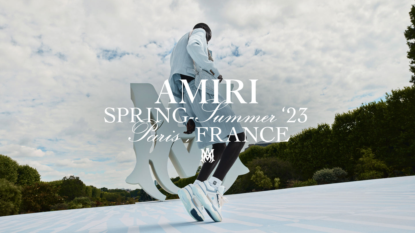 AMIRI returns to Paris with a vision forged in California sun and childhood imagination. In the Jardin des Plantes, Mike Amiri stages Spring-Summer ‘23 as a dreamscape of endless possibility — a creative realm where artistry and design merge, and traditional codes are cast aside. It is a collection that celebrates drawing outside the lines, a reflection of AMIRI’s freethinking spirit and high-art sensibility.