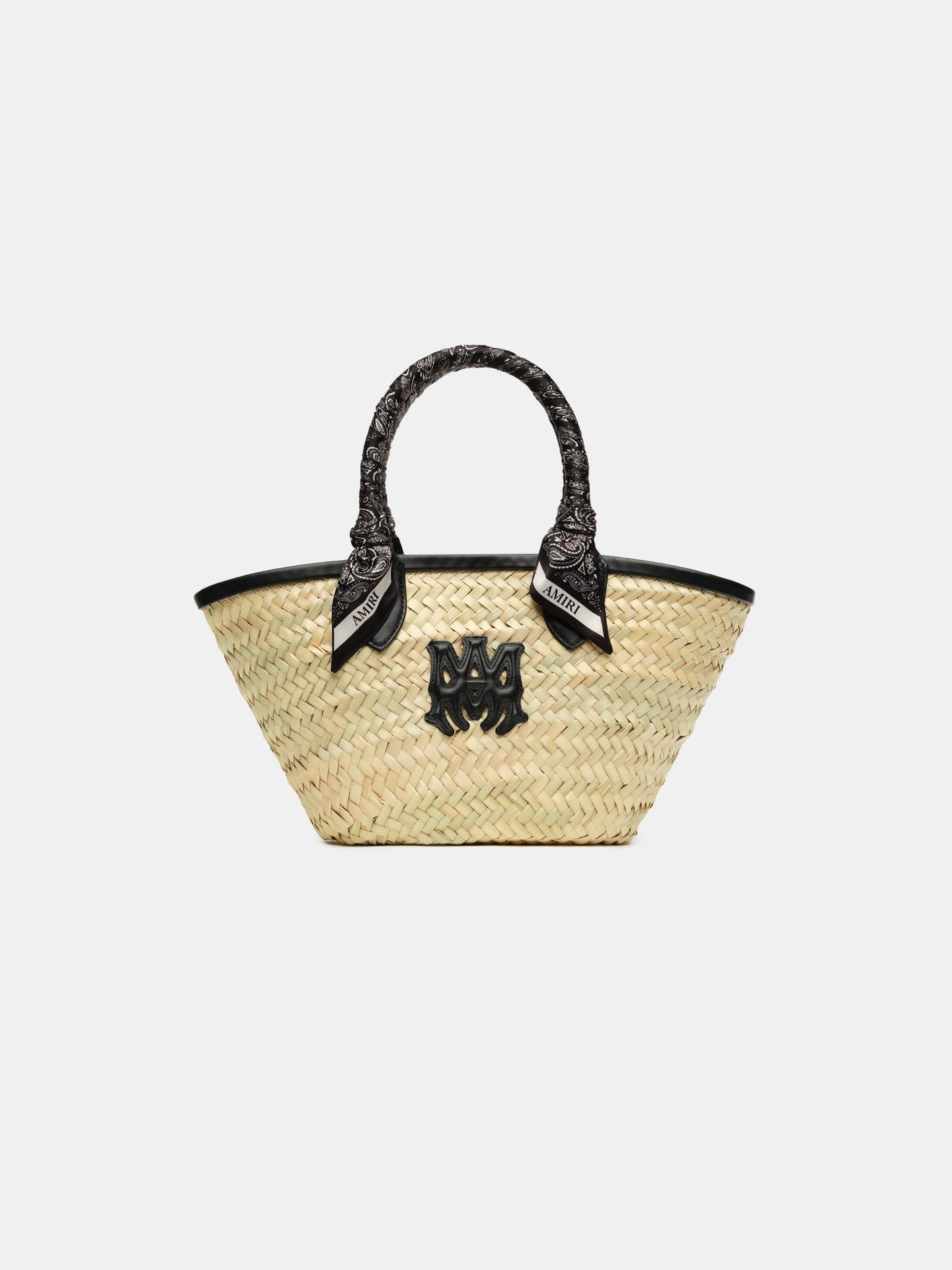 Final SaleRAFFIA BAG IN MICRO WITH EMBROIDERED MA ICON, LEATHER BINDING, AND TOP HANDLES.